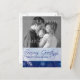 Seasons Greetings Blue Snowflake Postcard with Family Photo. Use the template place holders to add your own picture and add you names.