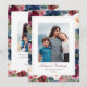 Seasons Greetings Burgundy and Navy Floral Photo Holiday Card