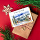 Season's greetings Christmas snowy winter Colorado snowy mountain village greetings Christmas new year postcard, snow winter wonderland in Breckenridge Colorado modern watercolor