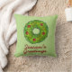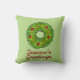Decorative throw pillow features an original marker illustration of a delicious Christmas cookie in the shape of a holly wreath and SEASON'S GREETINGS in a fun font. Perfect for holiday decorating!