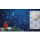A Whimsical cute snowman in blues with red birds and presents and hand lettering of "Seasons Greetings" also in blues and red. Coordinating sheets include stripes and snowflakes with birds.