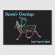 A bright, neon-like rendering of a caribou, also known as a reindeer. "Season's Greetings" appears in glowing blue and white. Add your own additional text. Inspired by the Northern Lights.