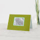 This card features an inset of snowy branches on a background of logan green with an aqua repeat pattern of "Season's Greetings." Inside says, "May your holidays be full of warmth and good cheer." The punchy colours add festiveness to the card.
