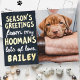 Design is composed of a dark background with a funny message --- "Season's Greetings from my Hoomans"