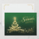 This elegant and inexpensive green and faux gold tone "Season's Greetings" Christmas or Holiday card has a deep green background with a lit up gold Christmas or Holiday tree of light, stars, ribbon garland and snowflakes with a large star light tree topper. The back has ornate gold scrolls that coordinate with the vintage typography on the front. This would be a perfect card for a company, business, or corporation to send out in bulk to their customers and/or employees. If you require any matching items, such as an envelope, postage, or envelope seal, please email niteowlstudio@gmail.com with your request.