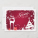 This inexpensive and festive red and white "Season's Greetings" Christmas or Holiday card has a male deer with antlers adorned with holly and berries, red and white gifts with ribbons, snowflakes, stars, and a variety of Christmas trees on a deep red background with a snowy border on it. This would be a perfect card for a company, business, or corporation to send out in bulk to their customers and/or employees. If you require any matching items, such as an envelope, postage, or envelope seal, please email niteowlstudio@gmail.com with your request.