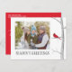 Simple red cardinal sitting on a white winter birch tree in the quiet solitude of winter. A beautiful Modern Christmas photo card. This design depicts the beauty of a winter bird in a woodland forest. Wish you and yours a Happy Holiday with this modern design. This design features Christmas holiday winter red cardinal, photo family picture 1 one, elegant simple minimalist red cardinal, season's greeting photo Christmas card, modern simple typography, nature red bird birch tree, winter birch tree branch, Christmas holiday photo greeting card, botanical woods woodland forest, rustic birch wood tree a rustic budget postcard.