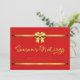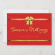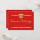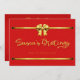 Red background with gold stars and gold ribbon. Season's Greetings written on the front, Invitation on the back. Name, Dates, Location and Address of event, Contact person and information customisable on the back.