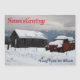 A wintry, rural scene featuring a snow-covered, dilapidated, old, red truck sitting near a ramshackle cabin near Sandpoint, ID. Red text reading, "Season's Greeting" also appears. Add your own additional text.