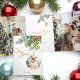 This fun, festive and colourful card features a watercolor style pine branch with Christmas ornaments, flowing gold "Season's Greetings" text graphic with elegant swashes (colour can be customised in the design editor) and a unique ornament-shaped cutout photo template with editable text field. The panels feature additional photo templates, text fields and complementary floral and text graphics.