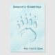 A simple, blue-toned, digital rendering of a Polar Bear paw print on the Arctic ice pack with text reading, "Season's Greetings". Add your own additional text.
