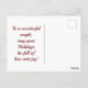 Sweet, picture of two polar bears wearing scarves with a snowflake background is featured on this Holiday postcard. Front of postcard reads, "Season's Greetings" and back of postcard reads, "To a wonderful couple, may your Holidays be full of love and joy!". A wonderful greeting to send to that favourite couple in your life!