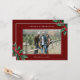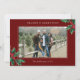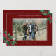 Season's Greetings Red Custom Christmas Card. A simple and elegant design featuring vintage holly and Christmas berries and a photo with messages you can customise. At the back of the card is a personalised message you can customise.