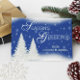 Corporate holiday card features a dark blue background with white snow covered pine trees, snowflakes, and the words "Season's Greetings" in white typography and your company name on the front. The inside has a holiday greeting that you can change to your own. There is also a place to add your own logo. To customise it click "Personalise this template" and add your own information. You can also change the navy blue to whatever colour you like. If you need help with customisation please email me at ybnormalone @gmail.com. Thanks for stopping by www.zazzle.com/Personal_Creations. ©Karen Hall