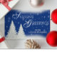 Corporate holiday card features a dark blue background with white snow covered pine trees, snowflakes, and the words "Season's Greetings" in white typography and your company name on the front. The inside has a holiday greeting that you can change to your own. There is also a place to add your own logo. To customise it click "Personalise this template" and add your own information. You can also change the navy blue to whatever colour you like. If you need help with customisation please email me at ybnormalone @gmail.com. Thanks for stopping by www.zazzle.com/Personal_Creations. ©Karen Hall