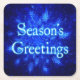 A swarm of blue fractal snowflakes. Text reading "Season's Greetings" appears in glowing blue and white.