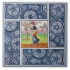 This aesthetic style blue bordered transferware tile by T & R Boote is reproduced from a set made in the early 1880s. It features a charming polychrome illustration by Kate Greenaway depicting a girl who has been gathering flowers, with her basket on her arm and bouquet in hand. We have the full set of four seasons, each listed separately. Available in 4.5 and 6 inch wall tiles for kitchen, bath, shower, or laundry. Can also be framed for display, made into keepsake boxes, desk accessories, and other Zazzle decor and gift items.