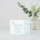 Double-sided simple modern beach sea waves style wedding infomation enclosure card in aqua blue and white, featuring a starfish drawing and swirling waves. This reception enclosure card is part of the a matching wedding set. Ideal to use as a wedding information card after the ceremony, or a directions card to keep you guest informed of the day and party ahead, also can be used a gift registry card, or accommodation card, or a wishing well card or thanks card with your slice of parting cake, or even a wedding website card by changing the customisable text on the front and reverse. Uniquely designed by Sarah Trett.
