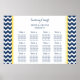 Elegant and contemporary customisable twelve table seating chart for wedding in modern dark navy blue, bright yellow and white fun and retro chevron zigzags stripes pattern. Customise with your guests name to make a unique seating chart for your wedding.
