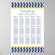 Chic and contemporary customisable fifteen table 150 guest seating seating chart for wedding in modern dark navy blue, bright yellow and white retro chevron zigzags stripes pattern. Customise with your guests name to make a unique seating chart for your wedding. Contact us for a custom chart for a different number of guests.