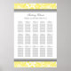 Elegant and contemporary customisable fifteen table 150 guest seating seating chart for wedding in modern bright lemon yellow, grey and white classic floral damask vintage pattern. Customise with your guests name to make a unique seating chart for your wedding. Contact us for a custom chart for a different number of guests.