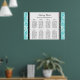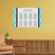 Elegant and contemporary customisable eight table seating chart for wedding in modern turquoise teal blue, black and white classic floral damask vintage pattern. Customise with your guests name to make a unique seating chart for your wedding. Contact us for a custom chart for a different number of guests.