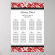 Elegant and contemporary customisable eight table seating chart for wedding in modern red, black and white classic floral damask vintage pattern. Customise with your guests name to make a unique seating chart for your wedding. Contact us to request a custom chart for a different number of guests.