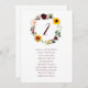 Sunflower & Roses Wreath Fall Wedding Seating Chart by Table Numbers (5x7): This rustic wedding seating chart pieces feature a beautiful yellow sunflower and burgundy red roses watercolor wreath at the top. Change your names and table numbers in each one.