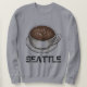Sweatshirt features an original marker illustration of a Seattle-style latte, with SEATTLE in a fun font.