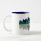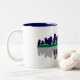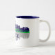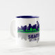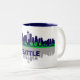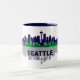 This ceramic coffee mug is shown in a Seattle skyline print.