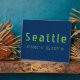 Seattle longitude and latitude coordinates in distressed fonts with sports teams colour combo. Add name or other personalised text on back