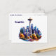 Postcard is shown with an art print of Seattle and the iconic space needle.
