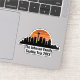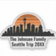 Cool customised Seattle trip laptop sticker featuring the city skyline at sunset. A silhouette of the city buildings in Washington, including the space needle above your personalised text for your family vacation.