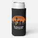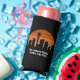Cool customised Seattle trip seltzer can cooler featuring the city skyline at sunset. A silhouette of the city buildings in Washington, including the space needle above your personalised text for your family vacation.