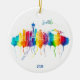 Watercolor painting of Seattle Skyline adorns this Christmas ornament.