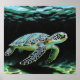 This poster features an oil paint print of a serene sea turtle swimming underwater.