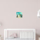 This horizontal poster features a whimsical watercolor painting of a sea turtle close up by her sandcastle