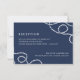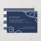 Elegant coastal wedding reception enclosure card features your reception details in white on a navy blue background, accented at the corners with loops of braided nautical rope. Cards reverse to wide nautical stripes.