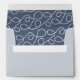 Coastal chic envelopes in pale grey for your 5x7 wedding invitations feature your return address pre-printed on the back flap in navy blue lettering. Envelopes open to reveal a pattern of looping nautical rope in white on slate blue. Designed to match our Seaworthy wedding and event invitation collection.