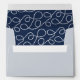 Coastal chic envelopes in pale grey for your 5x7 wedding invitations feature your return address pre-printed on the back flap in navy blue lettering. Envelopes open to reveal a pattern of looping nautical rope in white on navy blue. Designed to match our Seaworthy wedding and event invitation collection.