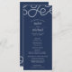 Our coastal chic wedding program features your ceremony details in white lettering on navy blue, accented with looping nautical rope at the top. Reverse side lists the members of your wedding party with easily editable text fields. Coordinates with our Starfish wedding invitation collection for elegant summer, beach or nautical weddings. Use the template fields to add your ceremony and bridal party information, and then click "Customise It" to reposition elements if needed. Need help? Contact me via the "Ask this Designer" link on this page.