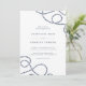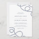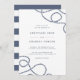 Elegant coastal wedding invitation design features your wedding day details in slate lettering on a crisp white background, accented at the corners with loops of braided nautical rope. Invitations reverse to wide nautical stripes.