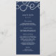 Coastal chic wedding menu in classic navy blue features your starter courses, entrees and desserts in white lettering, with your names and wedding date topped by a white nautical rope illustration. Coordinates with our Seaworthy collection for nautical, beach or summer weddings and celebrations.