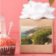 Rectangular photo sticker with the empty, secluded beach Tonnarella dell'Uzzo at the rocky northern coast of Sicily in Lo Zingaro National Park, between Scopello and San Vito Lo Capo, bathing in the hazy morning light.