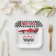 Start Your Engines for Fun! Invite friends and family to race on over for an unforgettable first birthday bash with our graphic-style race car paper plates. Featuring a red racecar zooming across a crisp white background, the bold "Fast One" text in cartoon font creates a lively and energetic vibe. The party details are elegantly displayed in a serif font for a balanced, easy-to-read layout. This napkin will have everyone excited to join the race!