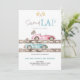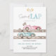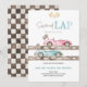 Get set for double the fun with our 'Second LAP around the track' Retro Race Car birthday invitation, perfect for celebrating your twins' special day. Showcasing a delightful pair of race cars, one in baby blue and the other in soft pink, each adorned with a chequered flag, this invitation brings a unique twist to your celebration. The playful watercolor fonts in coordinating pastel shades highlight the 'SECOND LAP' theme, creating a charming balance between excitement and nostalgia. Personalise with your event details and get ready to zoom into a memorable and joy-filled birthday bash!
