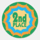 Second Place Ribbon Winner button or sticker in geen, blue, and orange for a contest prize or award. See also corresponding FirstPlace Ribbon Winner and Third Place Ribbon Winner designs in same store.