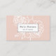 Elegant business card design features two lines of custom text on a blush pink background with white floral outline illustrations. Add your full contact details to the reverse side. These unique business cards make a chic choice for event planners, makeup artists and many more occupations.