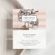 Elegant business card design features two lines of custom text on a pale blush pink striped background with off-black floral outline illustrations. Add your full contact details to the reverse side. These unique business cards make a chic choice for event planners, makeup artists and many more occupations.