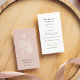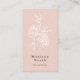 Chic minimalist floral business cards in a unique vertical format feature your name or company name at the bottom in off-black on blush pink, topped by a white floral outline illustration. Add your full contact information to the back in matching colours. Includes three social media icons and a template field for your username.